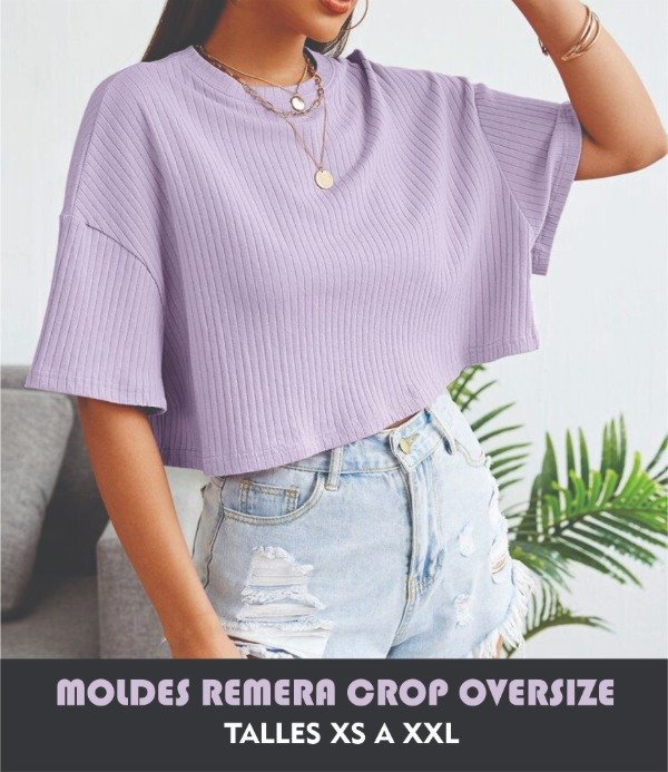 MOLDES REMERA CROP OVERSIZE ESCOTE REDONDO DE MUJER TALLES XS A XXL (85 A 135 BUSTO CADERA) PARA TELAS DE PUNTO A ELECCION