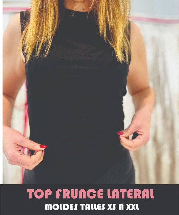 MOLDES TOP CON DRAPEADO LATERAL COMO EL DE LA FOTO, DE MUJER TALLES XS A XXL (85 A 120 BUSTO CADERA) PARA TELAS DE PUNTO A ELECCION